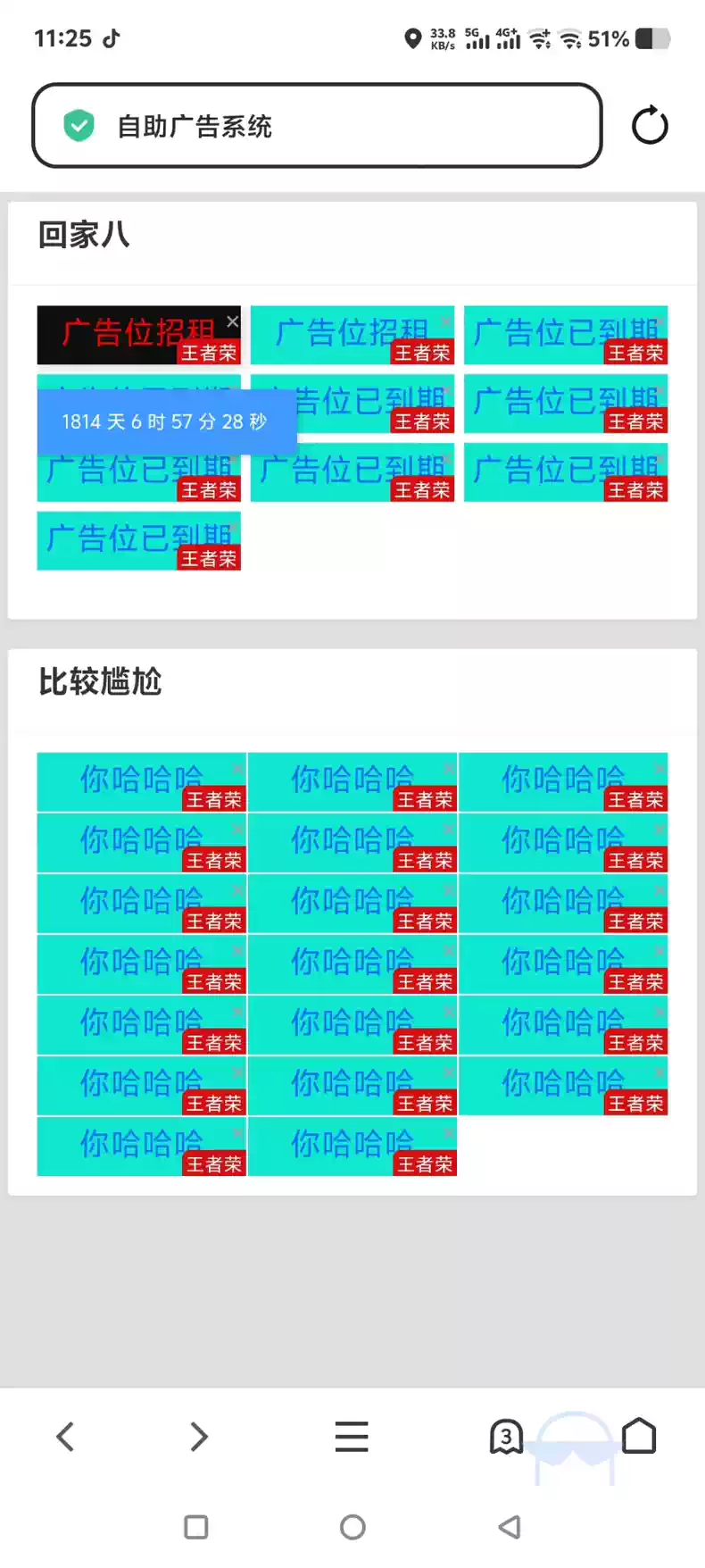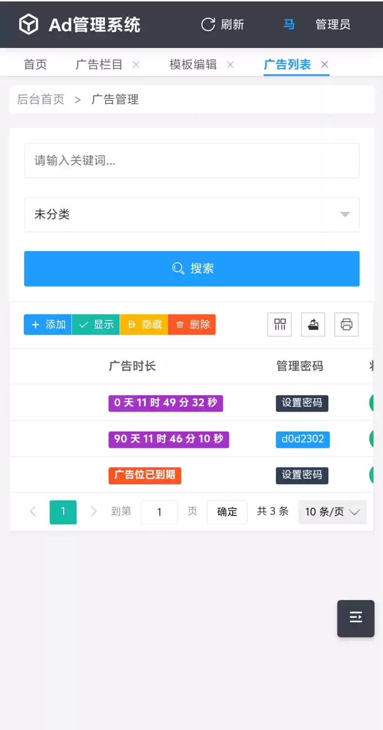 广告投放:到期自动招租,无需监控。实时显示剩余时长。密码管理,可凭借密码登陆,自定义修改广告信息